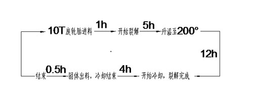 輪胎主要由橡膠(包括天然橡膠、合成橡膠)、炭黑及多種有機、無機助劑(包括增塑劑、防老劑、硫磺和氧化鋅等)組成。廢輪胎的熱裂解是指在無氧或缺氧工況及適當?shù)臏囟认,橡膠中主鏈具有不飽和鍵的高分子斷裂,產物主要是單體、二聚物和碎片,生成物再聚合為多種烯烴,從而脫出揮發(fā)性物質并形成固體炭的過程,其產物主要是燃料油、裂解氣等可貯存性能源和炭黑、鋼絲,各產物成分隨熱解方式、熱解溫度等變化而不同。